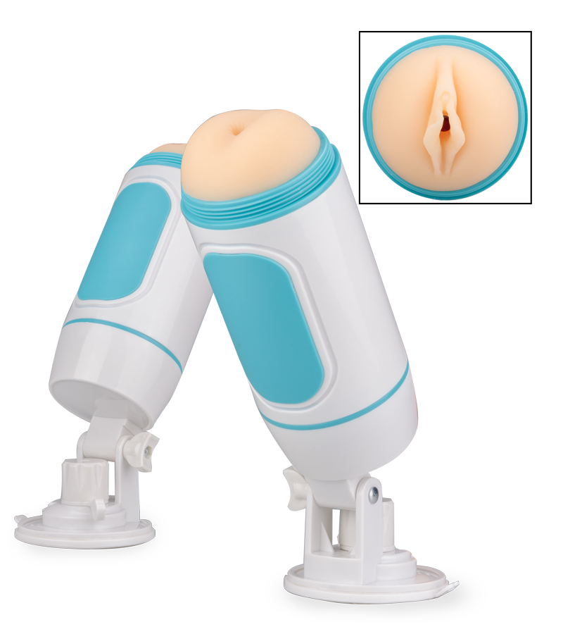 Ce masturbateur possède deux inserts en TPE communicants : un vagin nodulé et strié et un anus strié. Ils vous offriront des sensations fortes, et ce, que vous choisissiez de tenir le boitier avec vos mains ou que vous préfériez utiliser sa ventouse puissante.