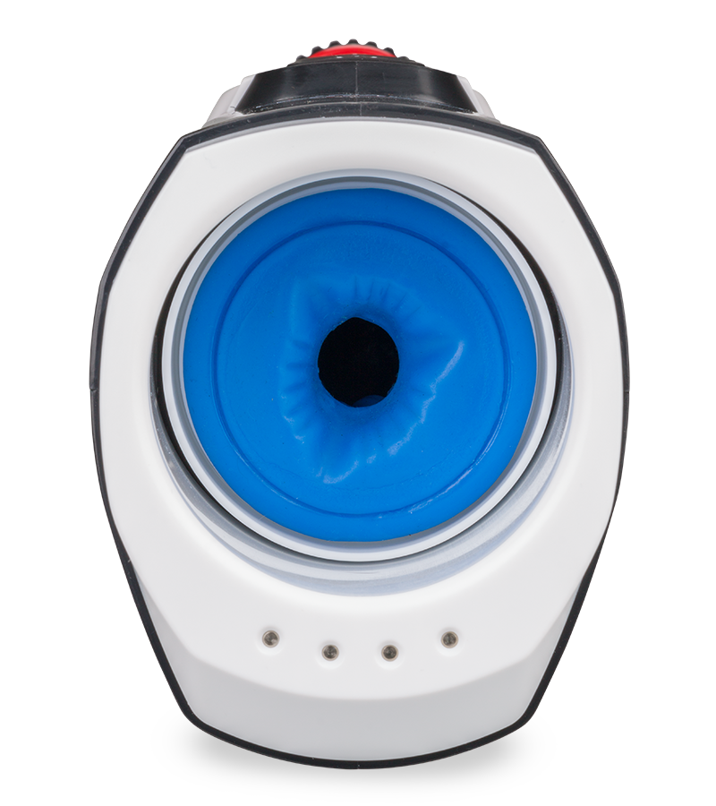 8. Le bouton situé sur le côté gauche du masturbateur permet de faire monter ou descendre la gaine dans le tunnel du masturbateur. En appuyant vers le haut, la gaine remonte et en appuyant vers le bas, elle redescend. Ce bouton ne peut être utilisé que lorsque les va-et-vient sont à l’arrêt.
