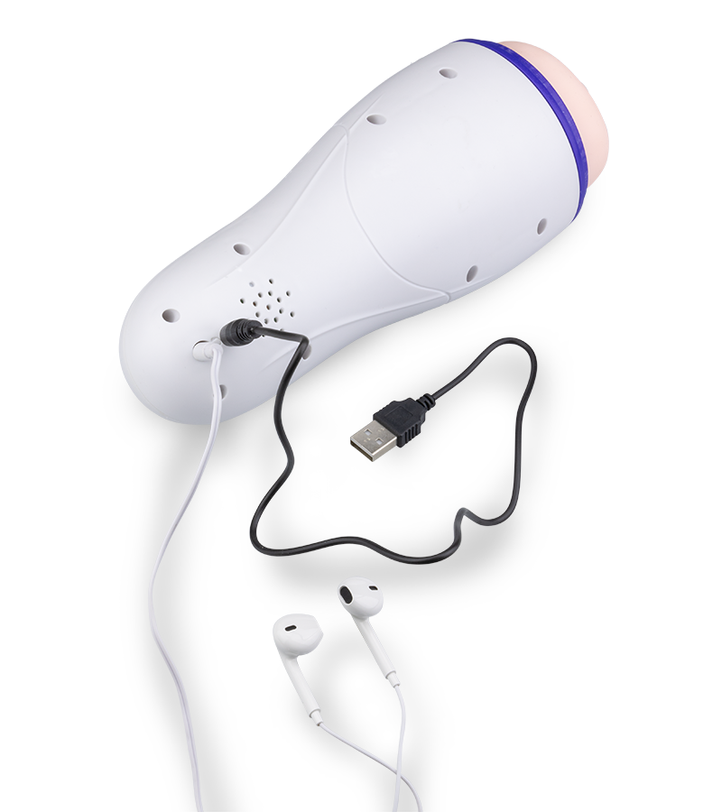 Dans ce boitier discret se cache un insert vagin au réalisme bluffant. De nombreux nodules sont présents tout le long du conduit pour masser votre intimité à la perfection. En plus de cela, vous pourrez ajouter des vibrations en sélectionnant l’un des 10 modes vibrants proposés. Une fonction vocale est également disponible pour que votre plaisir soit accompagné de gémissements féminins très excitants. Vous pourrez les écouter directement sur le haut-parleur du boitier ou bien en branchant une paire d’écouteurs grâce à la prise jack intégrée.