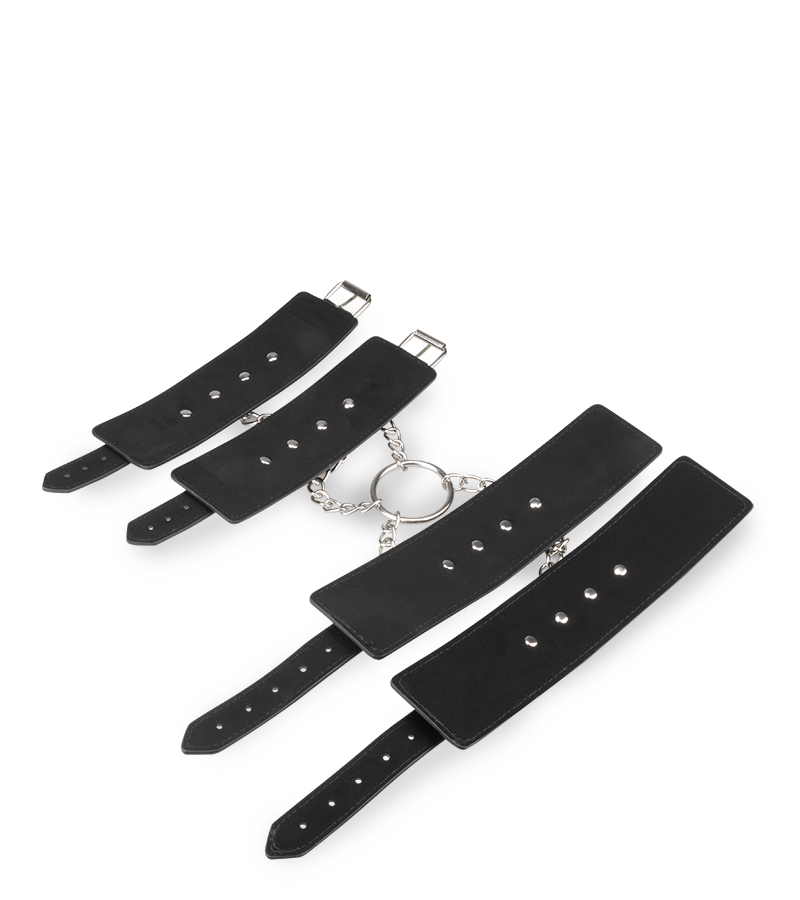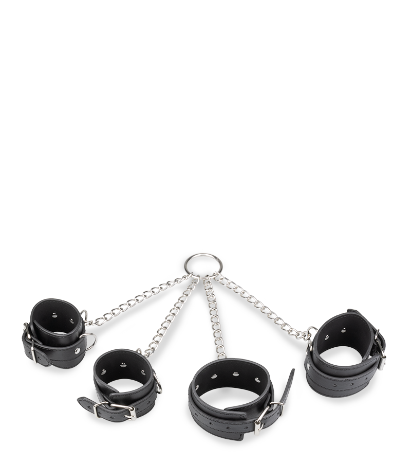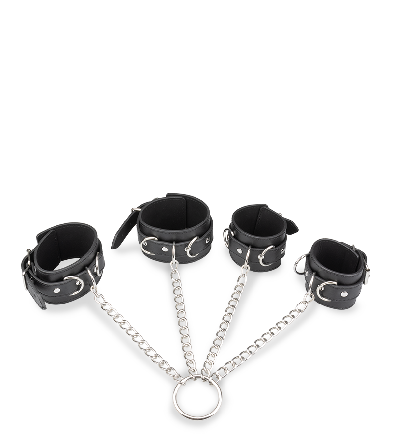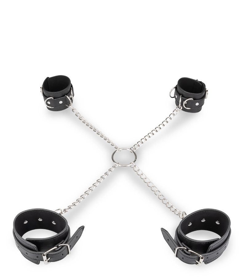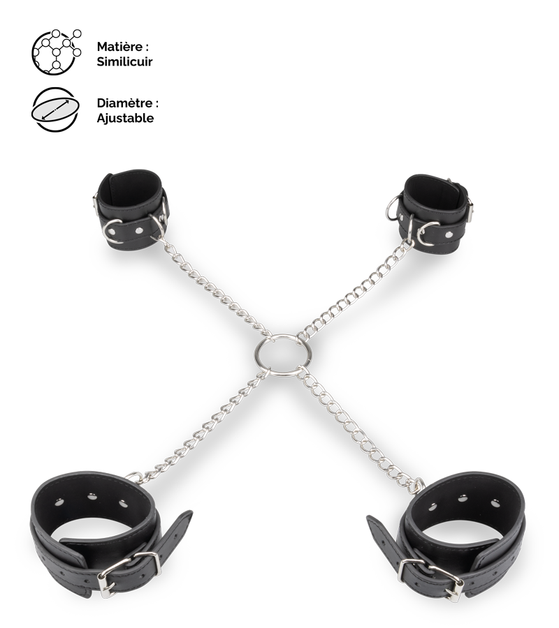 Ces accessoires BDSM érotiques donneront une nouvelle tournure à vos jeux sexuels. Parfaits pour une pratique BDSM débutant ou amateur. Une fois nouées à vos poignets et chevilles, ces menottes BDSM en croix vous contraindront à une position recroquevillée soit à l’avant soit à l’arrière en fonction de si vous positionnez l’anneau central dans le dos ou devant le ventre. Vos soirées s’annoncent follement torrides et coquines. La distance maximale entre deux menottes est de 40,0 cm. Cette courte distance vous obligera à subir une position qui multipliera votre ressenti de plaisir. Les 4 menottes s’ouvrent et se ferment grâce aux 2 jeux de clefs composant cet accessoire. Chaque menotte est extensible. Pour pousser le BDSM un peu plus loin, vous pouvez également vous vêtir d’une tenue BDSM, souvent en cuir ou latex.