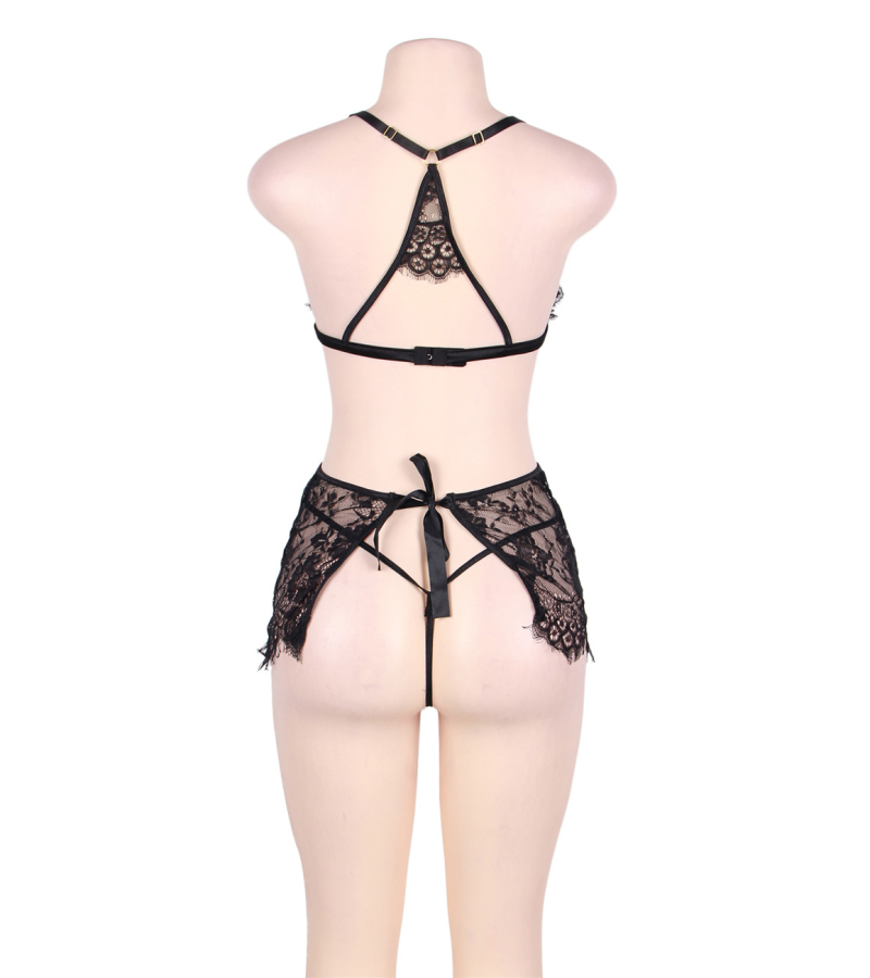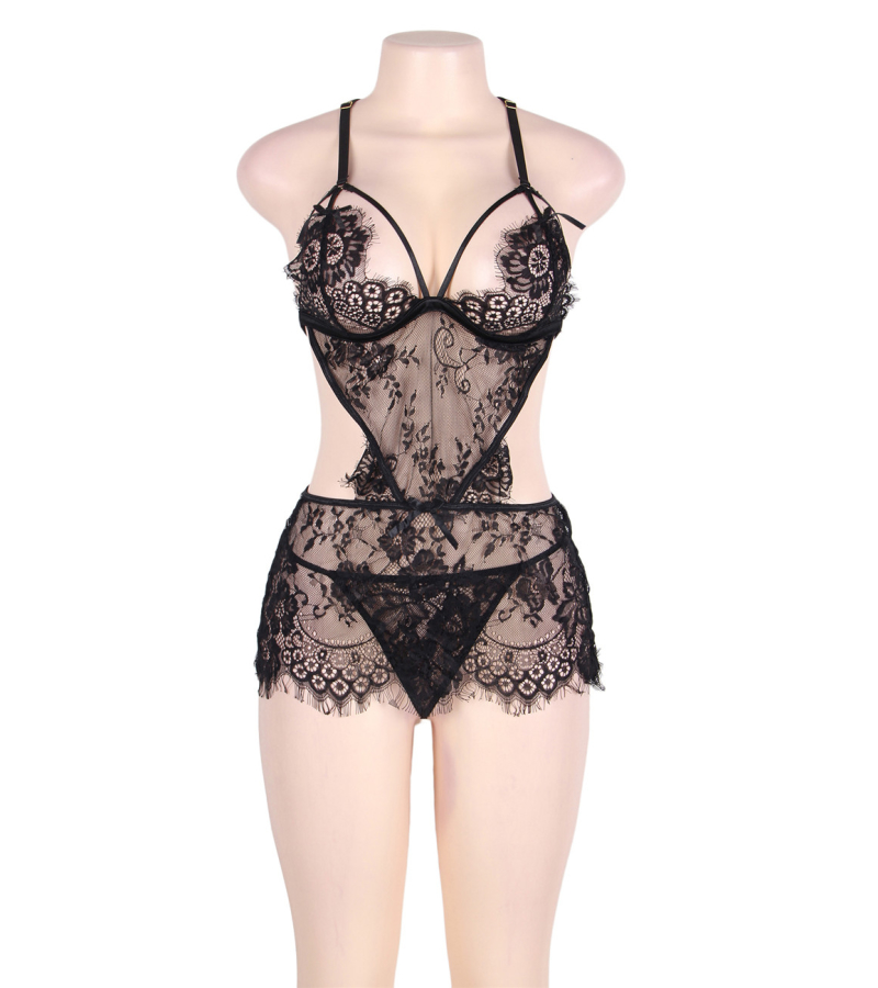 La nuisette légère en dentelle Flower Lover est une lingerie érotique sans le moindre équivalent, peu de tenues de nuit peuvent se targuer de mêler élégance et sexy avec autant d’harmonie. Elle ne recouvre le corps que partiellement et est conçue dans une dentelle très fine à motifs fleuris et entièrement transparente. De dos, ce ne sont que des bretelles et une ceinture en lacets qui se noue au-dessus des fesses qui dissimulent votre peau. Des fleurs plus épaisses que celles qui viennent orner le ventre se positionneront sur vos seins pour un effet sensuel exacerbé. Un ruban positionné au niveau du nombril donnera une touche finale de sensualité à cette tenue ultra-coquine. Très courte à l’avant cette nuisette s’arrêtera en haut des cuisses, un vif geste de la main suffira à dévoiler le string à motifs fleuris en dentelle qui est fourni avec la nuisette.