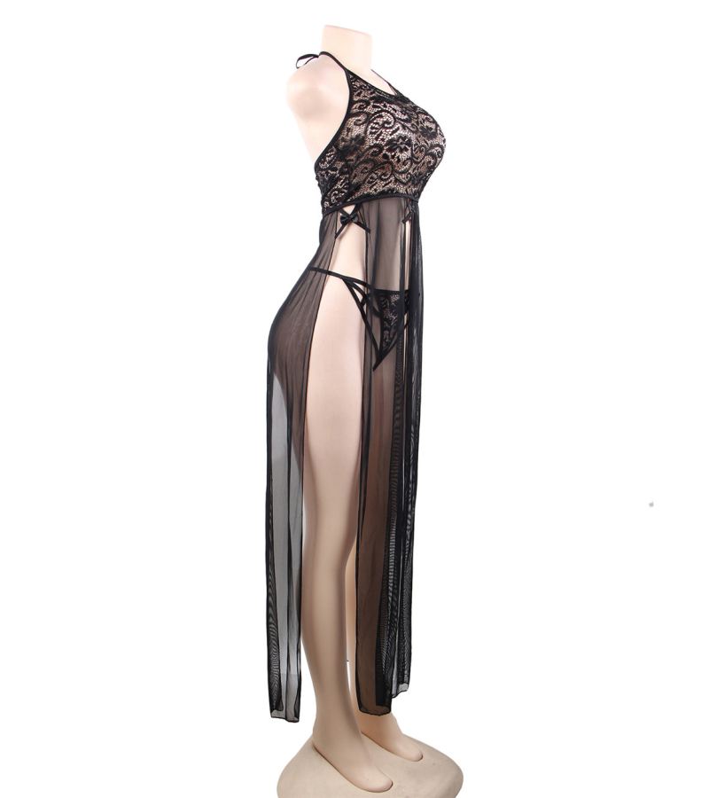 Faites vaciller vos partenaires avec cette nuisette longue élégante deux pièces !