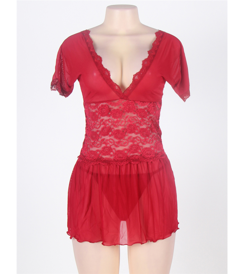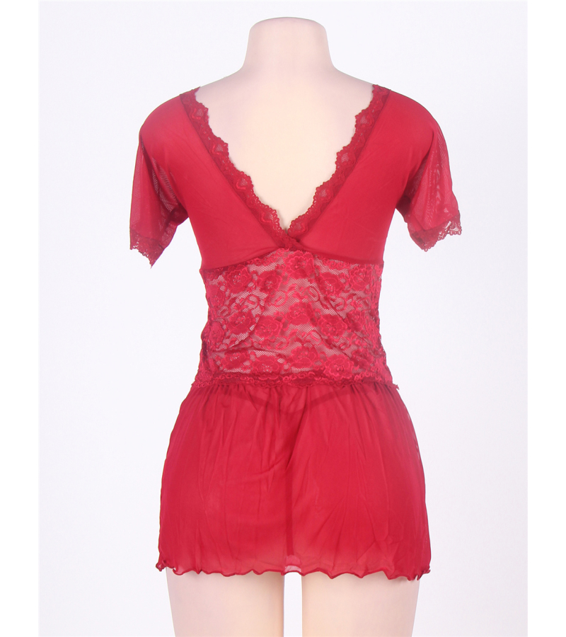 Cette nuisette rouge sexy en dentelle offre un décolleté en V qui mettra en valeur votre poitrine. Au niveau du ventre, cette tenue est composée d’une broderie très sexy qui englobe votre corps et révèle vos atouts. Elle se termine par une jupette transparente qui souligne la longueur de vos jambes et laisse entrevoir vos fesses. Cette nuisette est un indispensable de toutes vos soirées coquines.