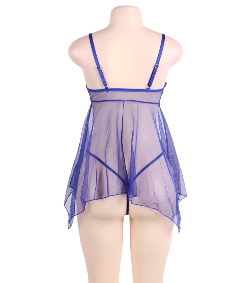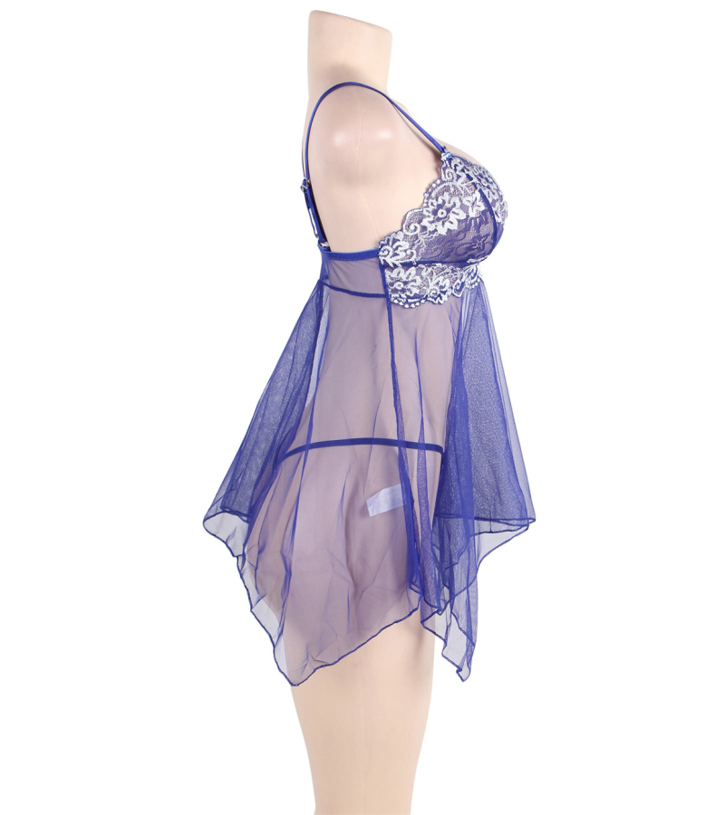Osez vous dévoiler avec la nuisette transparente voile bleu !