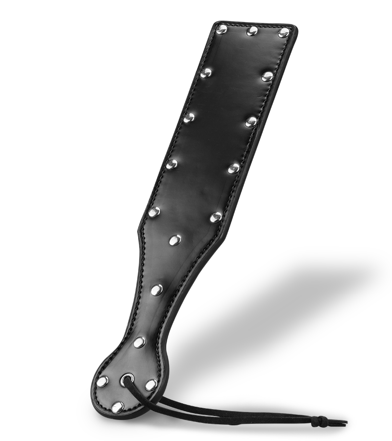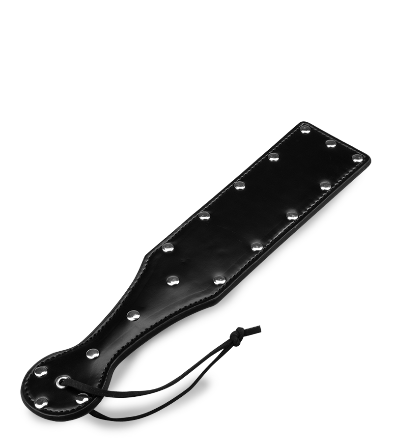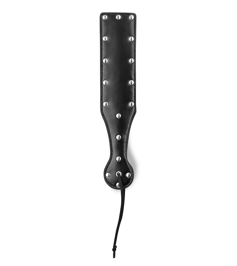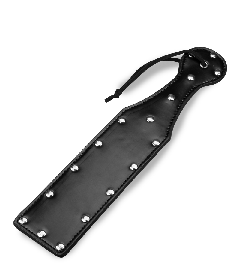 Explorez vos fantasmes BDSM avec le paddle BDSM noir cuir et rivets !