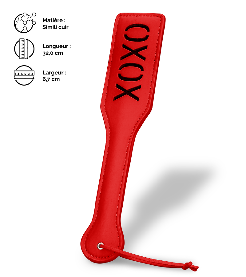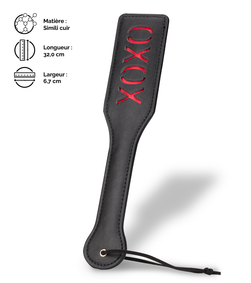 Laissez votre empreinte sur votre partenaire grâce au paddle BDSM XOXO. La puissance de cet accessoire BDSM dépend de vous et de la force des coups portés lors de vos jeux érotiques.