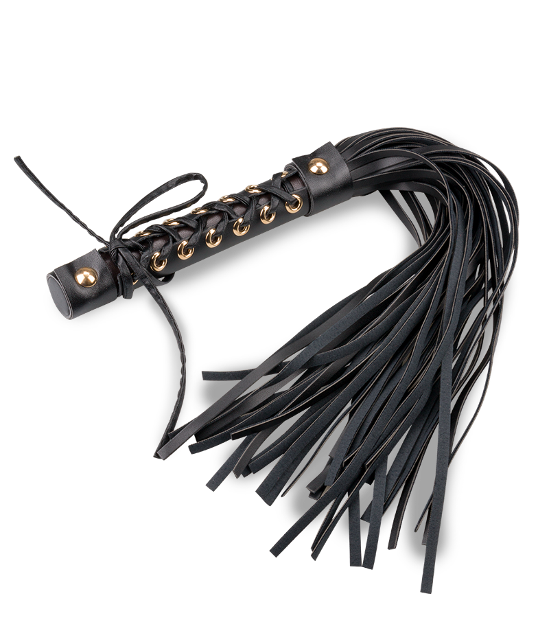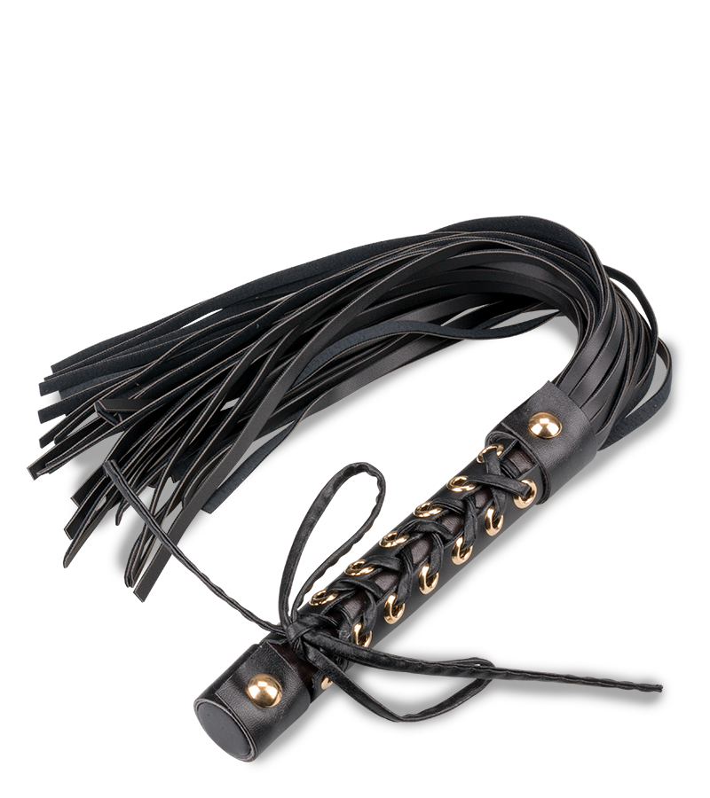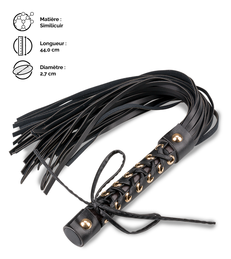 Si vous cherchez un accessoire BDSM à la fois efficace et élégant, ce martinet sera parfait ! Des œillets et détails dorés viennent décorer son manche et s’ajouter au simili cuir pour former une alliance raffinée. Les lanières fines suivront vos gestes pour caresser la peau de votre dominé ou la fouetter. Libre à vous de transformer son utilisation en punition ou récompense !