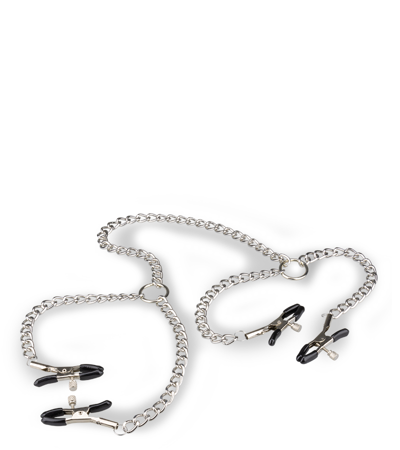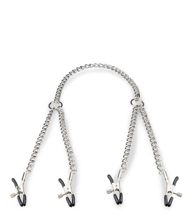 Cet accessoire en métal long de 76,0 cm au total est composé de deux pinces qui viennent s’accrocher à vos tétons tandis que deux autres pinces peuvent se fixer sur vos lèvres vaginales.