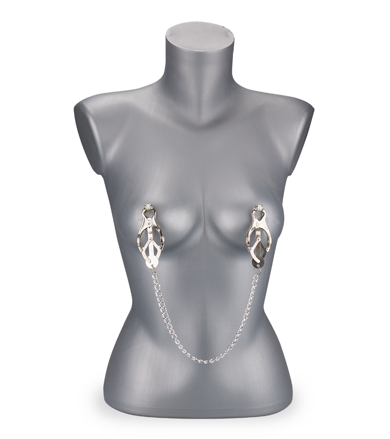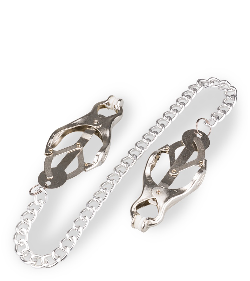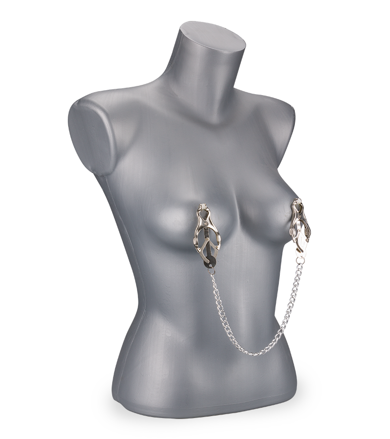 Ces deux pinces à seins sont idéales pour les utilisateurs avancés. L’intensité du pincement n’est pas réglable, les sensations seront franches et riches en plaisir. La chaine qui relie les deux pinces ajoutera une touche BDSM très sexy à votre allure, pour le plus grand bonheur de votre partenaire. L’ensemble mesure 50,0 cm de longueur totale et pèse 40 grammes.