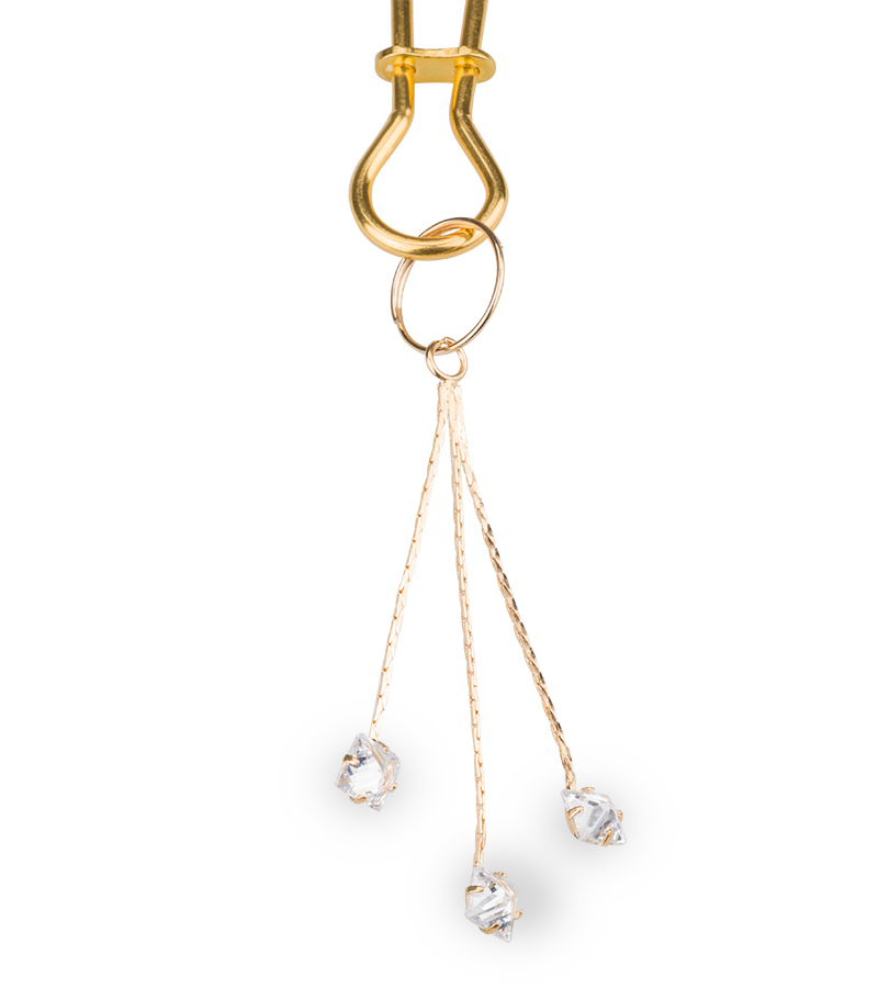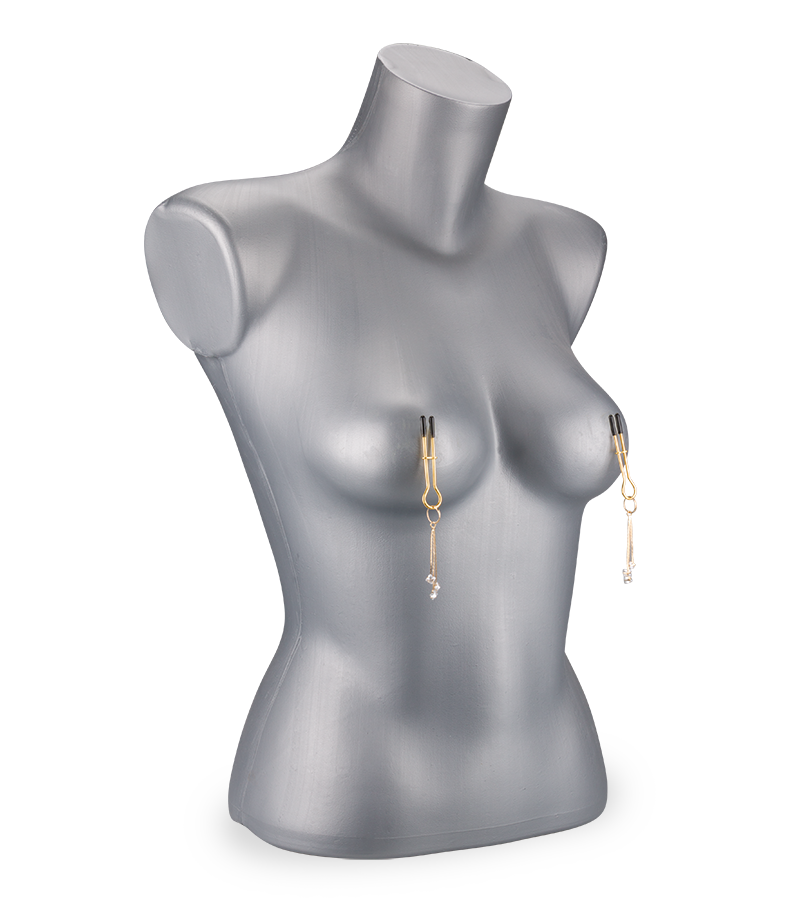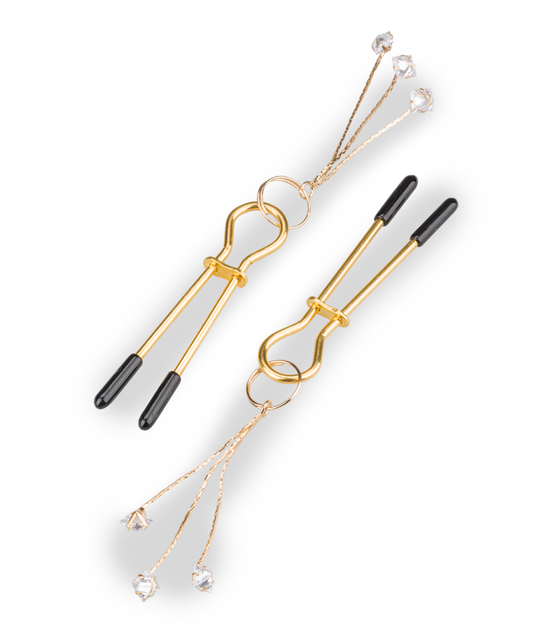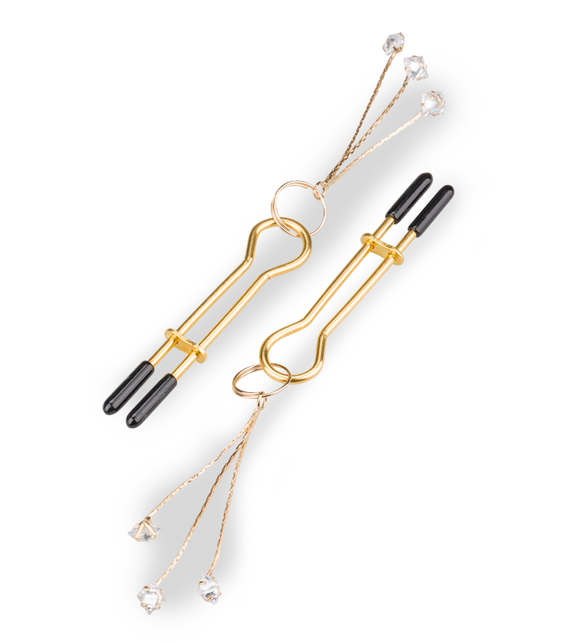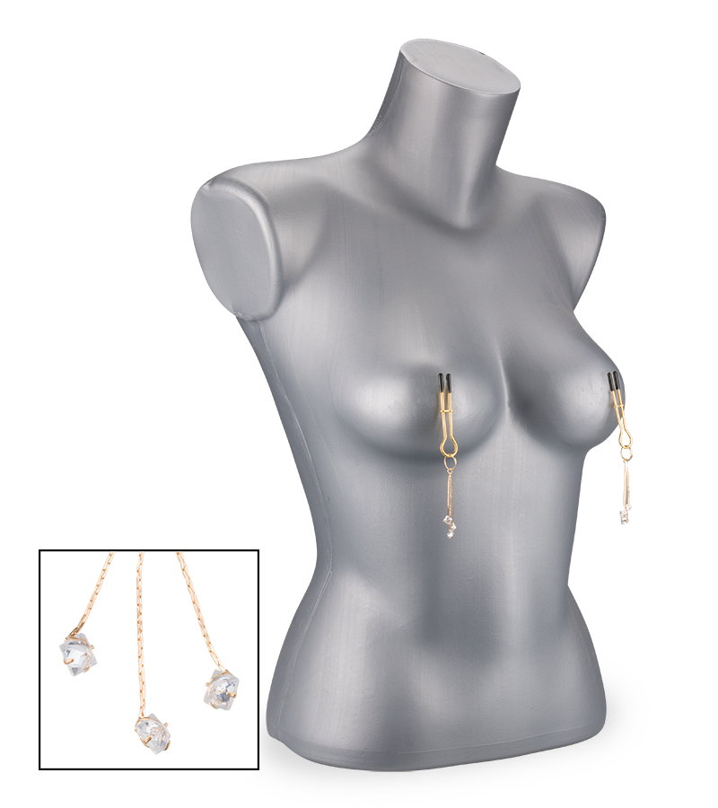 Vous surprendrez votre partenaire en habillant vos seins de ces magnifiques bijoux. Trois strass scintillants sont attachés par de jolies petites chaines torsadées et brillantes pour un rendu des plus élégants. De plus, ces deux pinces à tétons sont idéales pour les débutants, elles sont légères et exerceront une pression modérée et réglable en faisant monter ou descendre l’attache le long des deux tiges. Plus l’attache sera haute, plus les tiges seront proches et plus la pression exercée sera forte.