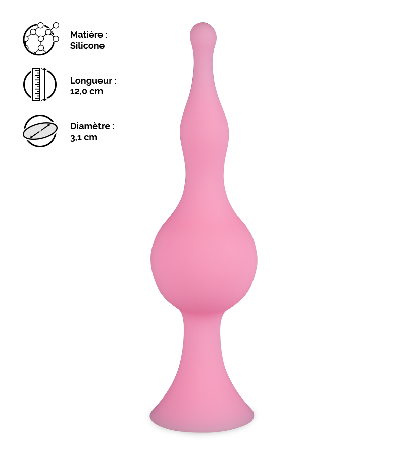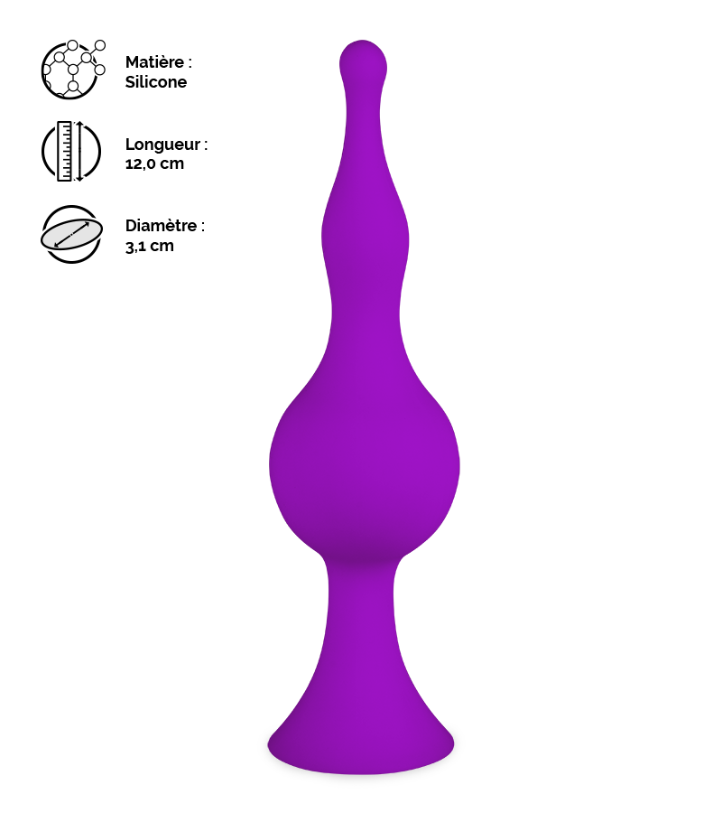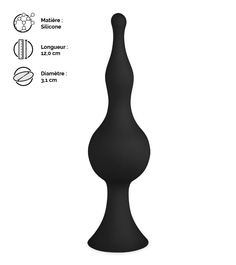 Son diamètre progressif avec sa pointe fine et sa matière silicone ultra douce le rend idéal pour les débutants pour une pénétration tout en douceur. Sa ventouse permettra également une utilisation sans les mains pour des orgasmes en toute liberté. Le plug anal à ventouse Blob mesure 12,0 cm de longueur totale dont 9,5 cm insérables. Son diamètre est progressif et commence à 0,7 cm jusqu’à 3,1 cm.