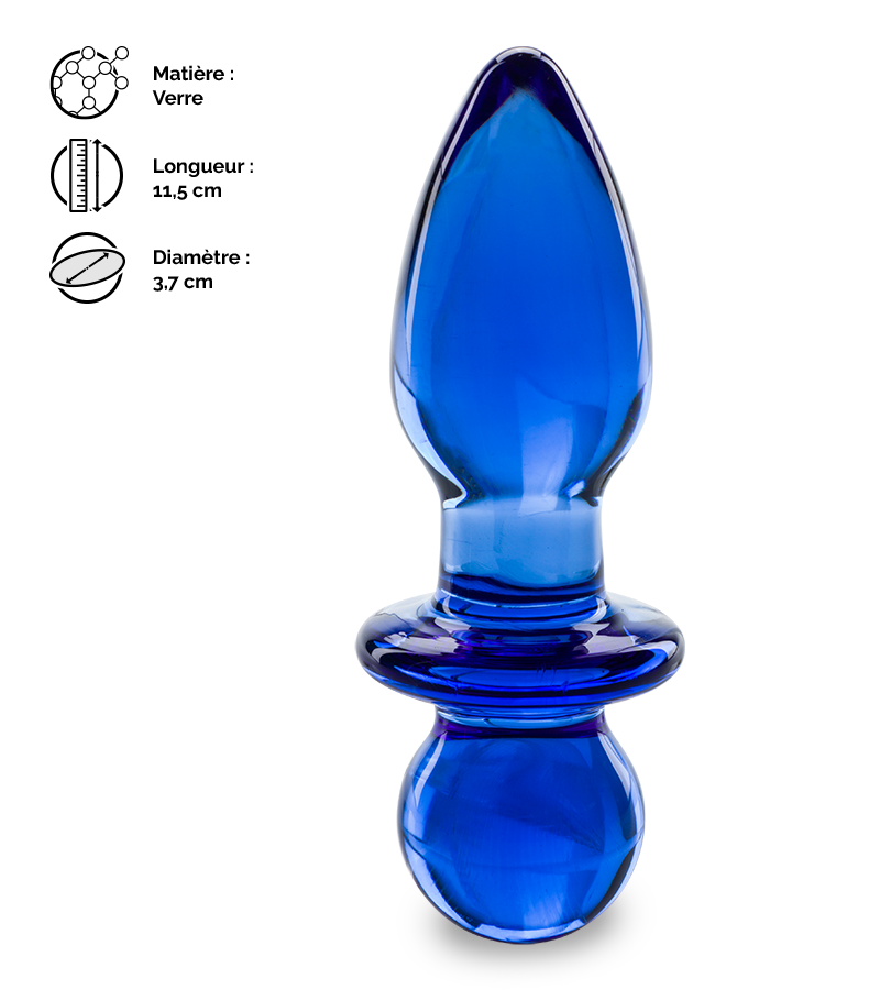 Très facile à introduire et capable de vous donner un grand plaisir, ce plug deviendra vite un incontournable ! Il pourra être utilisé seul ou en complément d’une pénétration vaginale. Sa forme ergonomique vous permettra de l’insérer en vous aisément et stimulera votre intimité à chacun de vos mouvements. Étant fabriqué en verre, il est d’une grande beauté, accentuée par sa transparence et sa teinte bleue. La boule présente à sa base sera un véritable bijou une fois le plug inséré en vous. Les autres avantages du verre sont sa facilité à être nettoyé, tout type de savon convenant, son hypoallergénicité et sa résistance aux changements de température. Ainsi, plongez-le dans de l’eau froide ou tiède avant de l’utiliser et vous découvrirez une nouvelle panoplie de sensations !