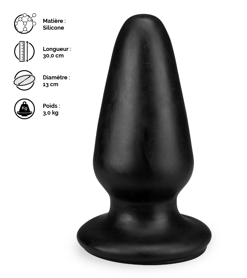 Cet énorme plug en silicone de 3,0 kg ne laissera personne indifférent et représentera un vrai challenge à quiconque osera le chevaucher. Sa base plate lui permet une bonne tenue sur une surface plate pour que vous puissiez l’utiliser sans les mains. Armez-vous d’une bonne dose de lubrifiant formulé à base d’eau et prenez votre temps pour découvrir des sensations plus fortes que jamais.