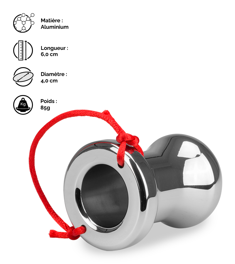 Ce plug tunnel en aluminium sera parfait si vous ĂŞtes amateurs d’exploration intime. En effet, grâce Ă lui, vous pourrez observer l’intimitĂ© profonde de votre partenaire sans prendre de risque grâce Ă la ficelle de retrait. Ce plug est aussi idĂ©al pour faciliter les lavements. Le plug anal creux mesure 6,0 cm de longueur totale dont 5,0 cm insĂ©rables. Son diamètre est de 4,0 cm Ă l’endroit le plus large. Il est vendu avec une ficelle Ă accrocher au plug grâce aux deux trous prĂ©vus Ă cet effet.