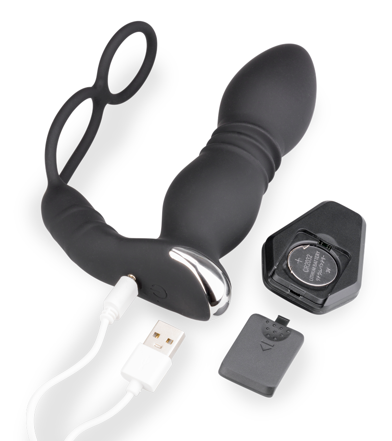 Ce sextoy est conçu en silicone et en ABS, il est idéal pour les hommes souhaitant profiter de sensations anales fortes pendant les rapports ou durant la masturbation. Il se compose d’une partie insérable vibrante qui effectue des va-et-vient dans l’anus, d’une partie vibrante dédiée au périnée et de deux anneaux cockring pour le pénis et les testicules. Vous aurez le choix entre 8 modes de vibrations et va-et-vient pour la partie insérable et 8 modes vibrants pour la partie dédiée au périnée. Tandis que vous profiterez de massages puissants, les anneaux vous assurerons une érection vigoureuse et vous aideront à prolonger vos ébats en repoussant votre orgasme. Vous pourrez même donner la télécommande sans fil à votre partenaire et ainsi vous laisser surprendre par ces choix.