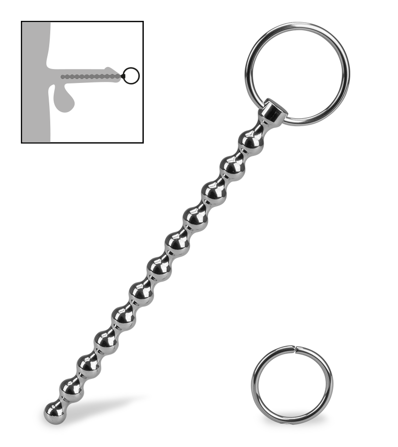 Le plug d’urètre long à boules Spootnik mesure 18,0 cm de long dont 14,0 cm insérables. Il est vendu avec un anneau de retrait de rechange.