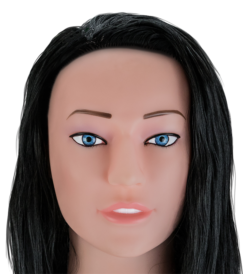 D’une longueur totale de 1,60 m, elle possède un visage ultra-réaliste pourvu de beaux yeux bleus, d’une bouche pulpeuse et de longs cheveux bruns.
