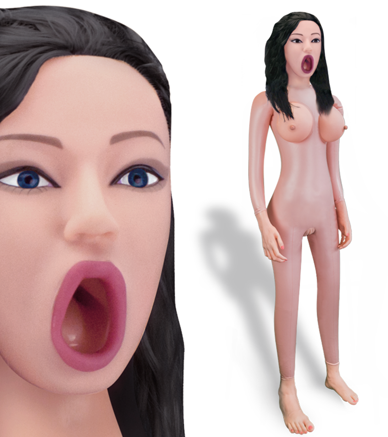Invitez la poupée gonflable brune suceuse Lina à partager vos nuits coquines.