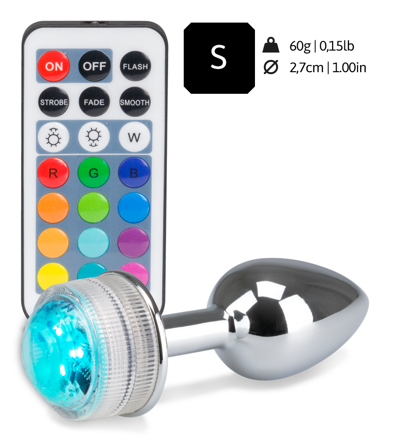 Léger et agréable à porter, vous pourrez facilement l’insérer grâce à son diamètre progressif en forme de pointe. Il se maintiendra dans votre intimité pendant que sa partie externe pourvue de LED diffusera de magnifiques effets lumineux. Vous aurez accès à 12 couleurs différentes ainsi qu’à 4 modes lumineux facilement configurables avec la télécommande sans fil fournie. Que vous ayez envie d’un éclairage tamisé ou intense, vous trouverez votre bonheur grâce au variateur de luminosité configurable en quelques clics.