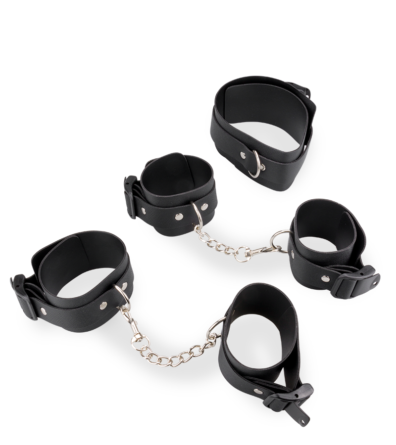 - 1 paire de menottes pour les chevilles. Réglables, elles conviennent pour un tour de cheville mesurant jusqu’à 26,0 cm.