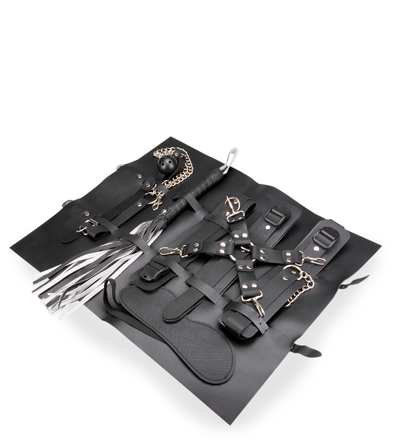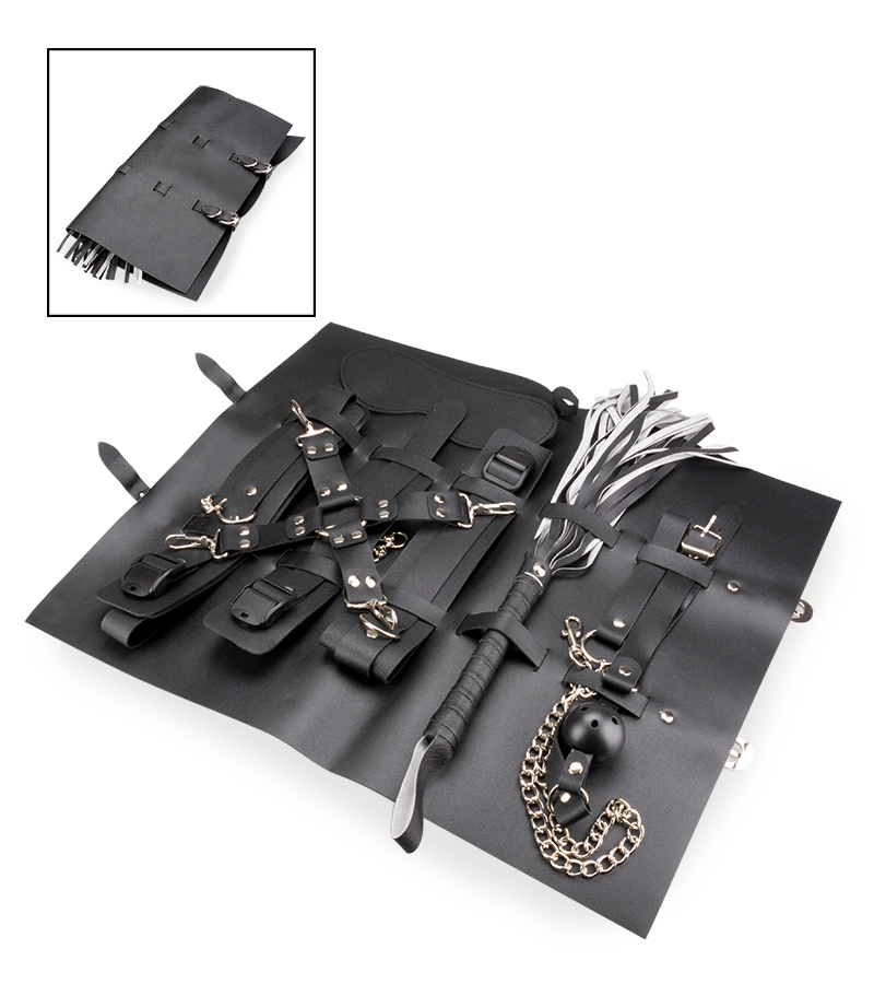 Ce kit est ultra-pratique pour vous lancer en douceur dans la pratique du BDSM. Il contient l’équipement de base pour découvrir de nouveaux horizons et pimenter votre quotidien de la façon la plus sexy qu’il soit. Tous les accessoires sont conçus en similicuir avec finitions métalliques. Un rangement est également fourni pour vous permettre d’y glisser tous vos accessoires et ainsi les stocker d’une manière discrète et sûre.