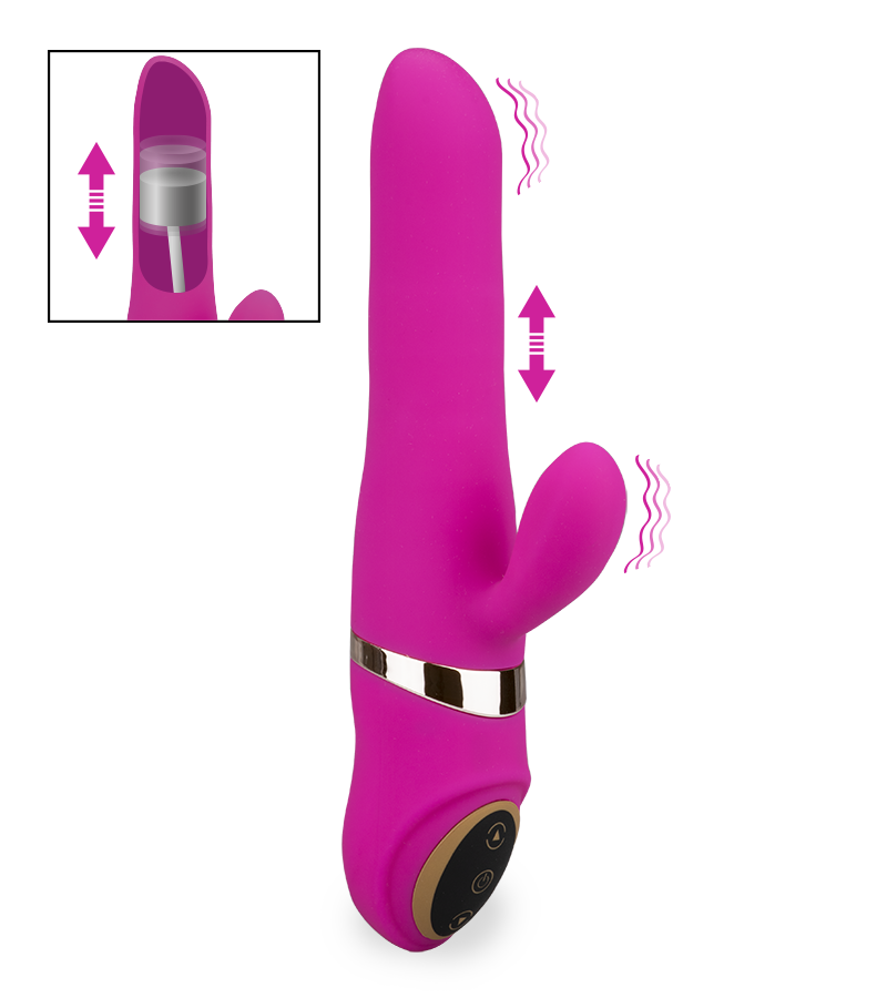 La partie gode de ce sextoy émet des pulsations à hauteur de cinq modes différents, tout comme la partie rabbit, qui délivre cinq modes de vibration.