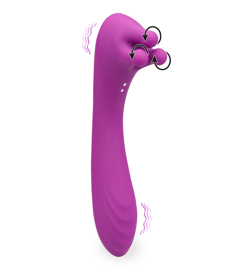 Véritable couteau-suisse du plaisir, Craze a été spécialement conçu pour vous mener à l’orgasme de différentes façons. Il possède une tête vibrante et massante dédiée au clitoris qui viendra le stimuler grâce à ses trois branches dont deux mouvantes. Ainsi, la totalité du gland du clitoris profitera de mouvements jouissifs et de vibrations enivrantes. Vous pourrez également utiliser cette tête pour masser d’autres parties de votre corps, elle sera tout à fait indiquée pour une stimulation des tétons par exemple. Craze vous réserve également un autre usage, son manche légèrement strié est en réalité un vibromasseur que vous pourrez insérez pour profiter de ses vibrations expertes. Ces deux parties possèdent leur propre moteur, elles vous proposent chacune 9 modes de stimulation pour varier les plaisirs.