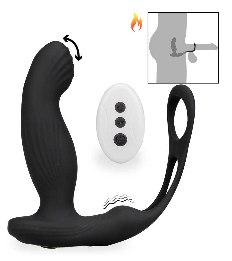 Ce sextoy pour homme vous promet des orgasmes explosifs grâce à ses nombreuses options. Il possède une partie insérable chauffante dont la tête effectue des mouvements précisément localisés sur votre prostate tandis que la base vibrante stimulera votre périnée. Vous pourrez varier les plaisirs grâce aux 10 modes de vibrations et aux 10 modes de massages contrôlables avec la télécommande sans fil fournie. De plus, deux anneaux cockring, pour le pénis et les testicules, sont intégrés. Une fois enfilés, ils boosteront votre érection et aideront à repousser l’orgasme pour que vos ébats soient plus intenses et plus longs.