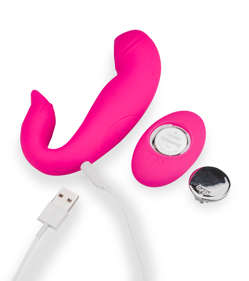 1. Avant la première utilisation, commencez par charger la batterie du sextoy pendant deux heures avec le câble USB fourni (pensez également à retirer le plastique de protection situé sous la pile de la télécommande)