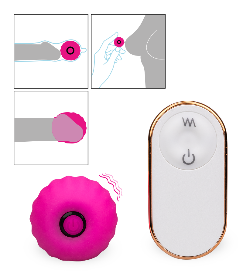 4. Pour utiliser le stimulateur avec sa télécommande, allumez-là en appuyant 3 secondes sur son bouton power puis changez de mode avec le bouton supérieur (vibrations)