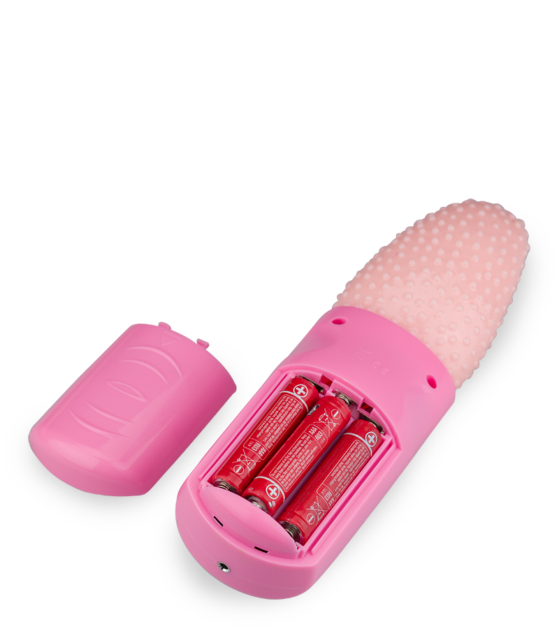 L’appareil mesure 16,0 cm de long au total dont 7,0 cm de long pour la langue. L’œuf vibrant mesure 6,0 cm de long et 2,0 cm de diamètre. Il fonctionne avec 3 piles LR03 non fournies.
