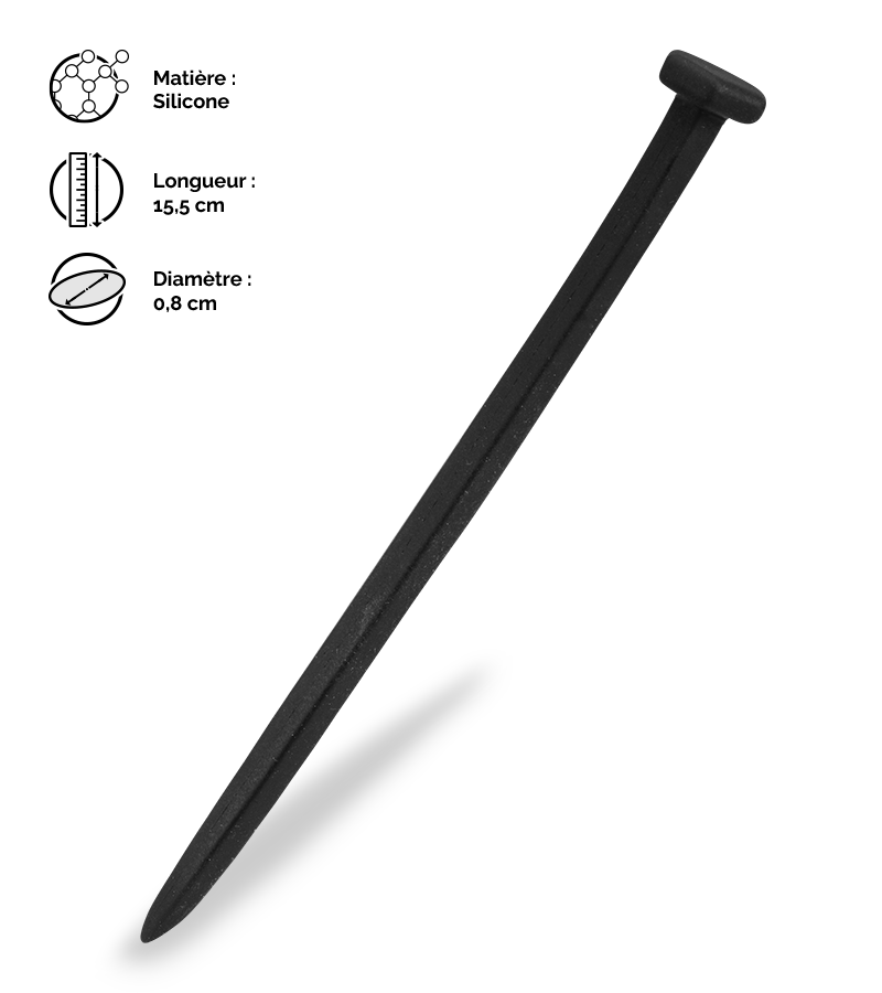 Son design en forme de clou très original est idéal pour les personnes recherchant des sensations fortes. Sa pointe fine et sa matière toute douce en silicone permettent une insertion facile et progressive. La tige d’urètre Carpenter est disponible en deux tailles de diamètre : S et L. Taille S : diamètre de 0,8 cm, longueur de 15,5 cm. Taille L : diamètre de 1,2 cm, longueur de 15,5 cm.