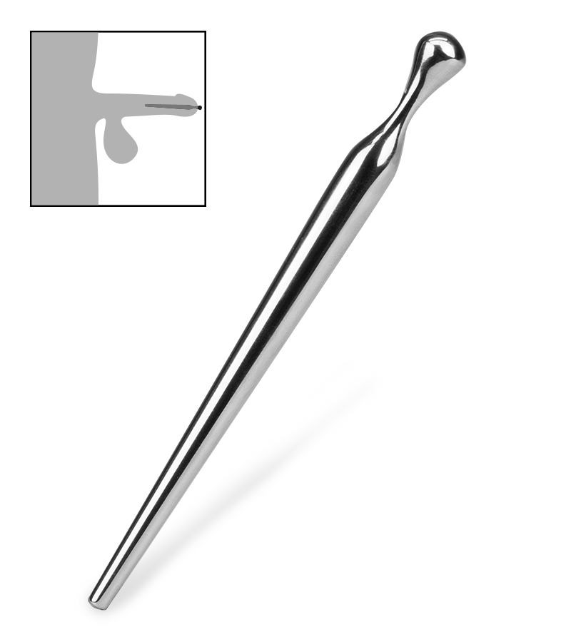 La tige d’urètre Lander mesure 10,0 cm de longueur totale dont 8,5 cm insérables. Son diamètre est de 0,8 cm à l’endroit le plus large.