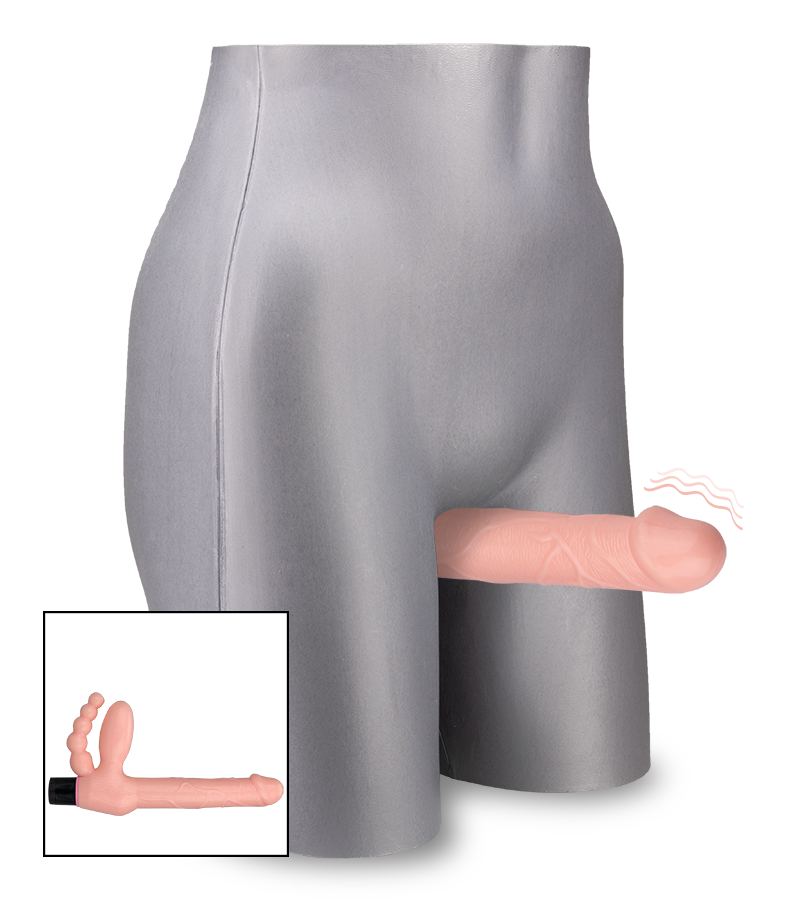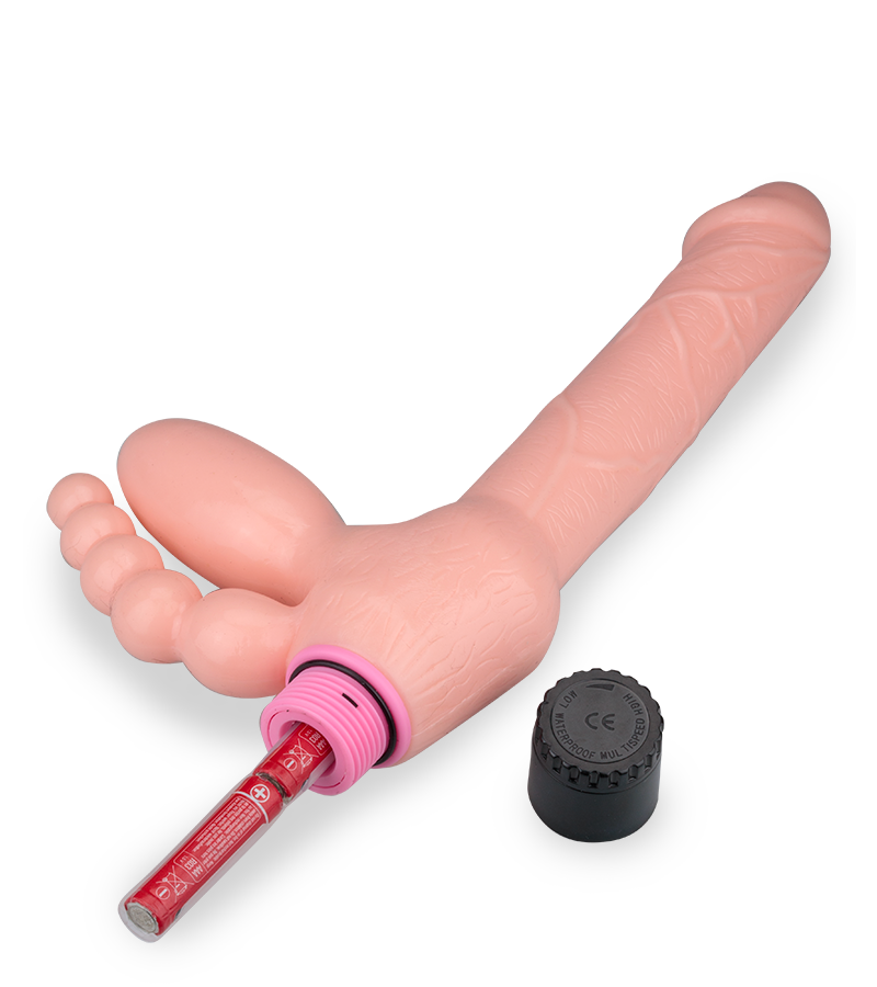 Le gode mesure 25,0 cm de longueur totale. Le gode principale mesure 15,0 cm de long pour 3,2 cm de diamètre. La partie qui s’insère dans le vagin mesure 7,0 cm de long pour 3,3 cm de diamètre tandis que le chapelet anal mesure 9,0 cm de long pour 2,0 cm de diamètre. Pour profiter des vibrations, vous aurez besoin de 2 piles LR03 non fournies disponibles en option.