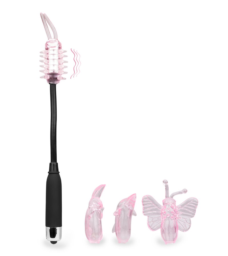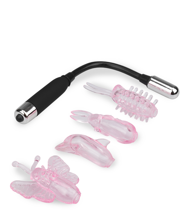 Vibrez intensément avec ce vibro baguette magique. Sa forme originale dispose de 4 embouts fabriqués dans un matériau Rubber Touch très agréable. Ainsi, un papillon, un lapin, une chenille et un dauphin procureront chacun un effet différent lors de l’emploi. La baguette de 22 cm et inclinable à volonté facilitera l’accès à vos parties intimes et vous permettra d’avoir une position détendue pour profiter pleinement. Chaque embout délivrera une impression différente à votre clitoris pour des orgasmes sensationnels.