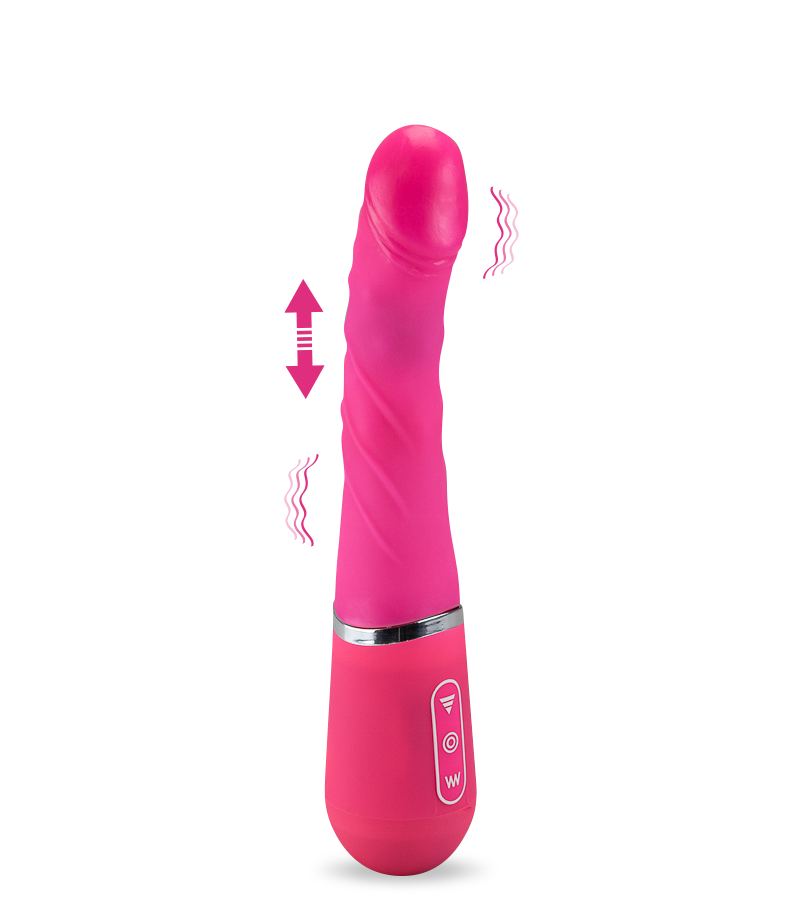 Le vibro gode va-et-vient et vibration est comme son nom l’indique, un sextoy pour femme qui possède des fonctions vibrantes et une fonction de va-et-vient. Ce vibromasseur long possède tout ce qu’il faut pour vous procurer des sensations hautement orgasmiques. L’énorme gode de 19cm et d’un diamètre maximum de 4,4cm est pourvu de picots qui procureront d’immenses sensation de frottement lors de vos séances de va-et-vient et rotation. De plus, vous n’aurez que le choix parmi la puissance puisque ce sextoy vibrant pour femme possède 10 modes de vibration et 3 vitesses de va-et-vient. Les va-et-vient s’exercent sur une distance de 3cm. Optez pour un vibromasseur deluxe vibrant et va-et-vient !