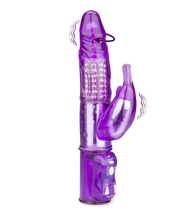 DĂ©couvrez ce vibromasseur Jack Rabbit Layer Beads Ă©quipĂ© d’un ergot vibrant, d’une rangĂ©e de perles et d’un embout rotatif, pour des sensations multiples. DotĂ© de 6 vitesses de rotation, et de 7 vitesses de vibration, ce vibromasseur rabbit Ă©veillera vos sens en stimulant en mĂŞme temps votre clitoris et votre point G. D’une longueur totale de 23,5 cm dont 12 cm insĂ©rables, le gode de 3,9 cm de diamètre est pourvu d’une rangĂ©e de billes rotatives et d’un embout, lui aussi rotatif. L’ergot en forme de petit lapin vibre sur votre clitoris selon l’un des 7 modes sĂ©lectionnĂ©s. Très agrĂ©able Ă utiliser avec sa texture TPE, ce sextoy est un classique. Fonctionne avec 4 piles LR6 non fournies.