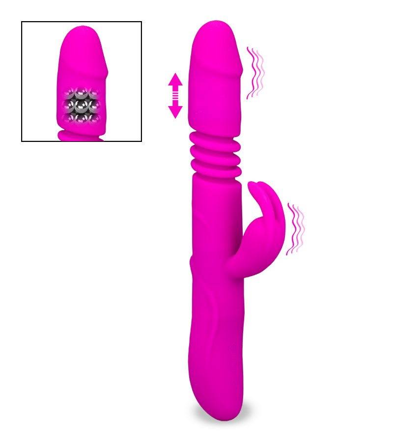 Composé de silicone ultra-doux, le vibro rabbit up and down Brad est ultra complet et deviendra vite votre jouet préféré. Sa partie insérable effectuera des va-et-vient en vous, elle possède également deux rangées de billes massantes rotatives pour encore plus de plaisir. Pendant ce temps, le petit lapin viendra titiller votre clitoris grâce aux vibrations. 12 modes vibrants et 4 modes de va-et-vient vous seront proposés pour que vous puissiez trouver la façon parfaite de vous faire du bien.
