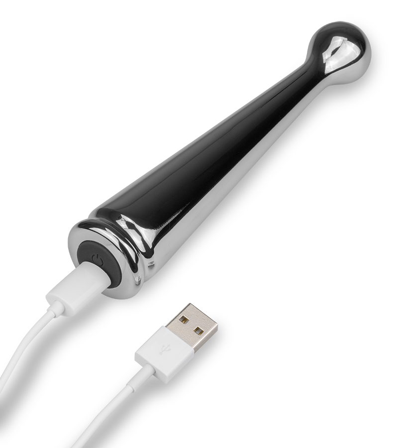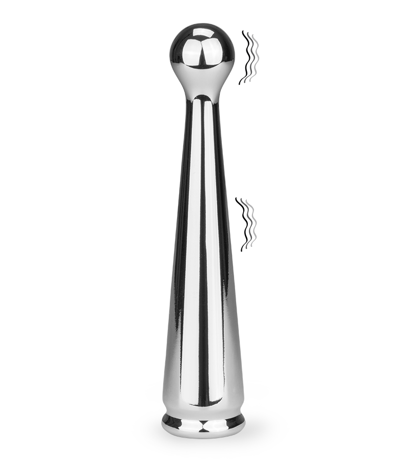 Ce petit vibromasseur en forme de cône est surmonté d’une boule vibrante pour stimuler précisément le clitoris ou le vagin. Grâce à sa conception en métal, sa surface est très lisse et glissera sur votre peau, elle sera compatible avec tous les types de lubrifiants. De plus, sa lourdeur et la fraicheur de la matière vous permettront d’atteindre des sensations uniques. Avec ses 9 modes vibrants (3 intensités et 6 cadences), vous trouverez forcément la meilleure façon de vous faire du bien.
