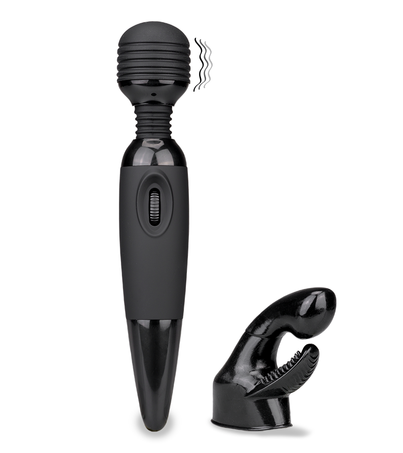 Envie d’une vague de douceur ou de secouer votre intimité ? Optez pour ce vibromasseur Fantasy Wand black 2 embouts.