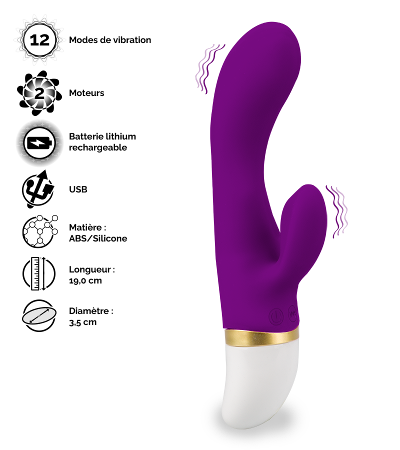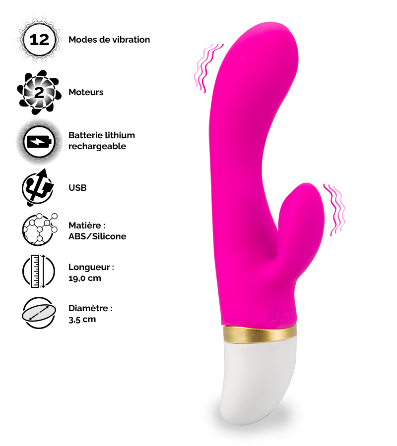 Les vibromasseurs rabbit ont la particularitĂ© de possĂ©der une petite partie externe pour stimuler le clitoris en complĂ©ment des massages du point G. Cette double stimulation est ultra efficace et permet d’atteindre des orgasmes Ă couper le souffle. Ce modèle très simple Ă utiliser vous propose 12 modes de vibrations pour que vous puissiez trouver celui qui correspond Ă votre humeur du moment. En silicone tout doux et avec sa partie insĂ©rable courbĂ©e pour atteindre votre point G facilement, il deviendra vite votre petit chouchou.