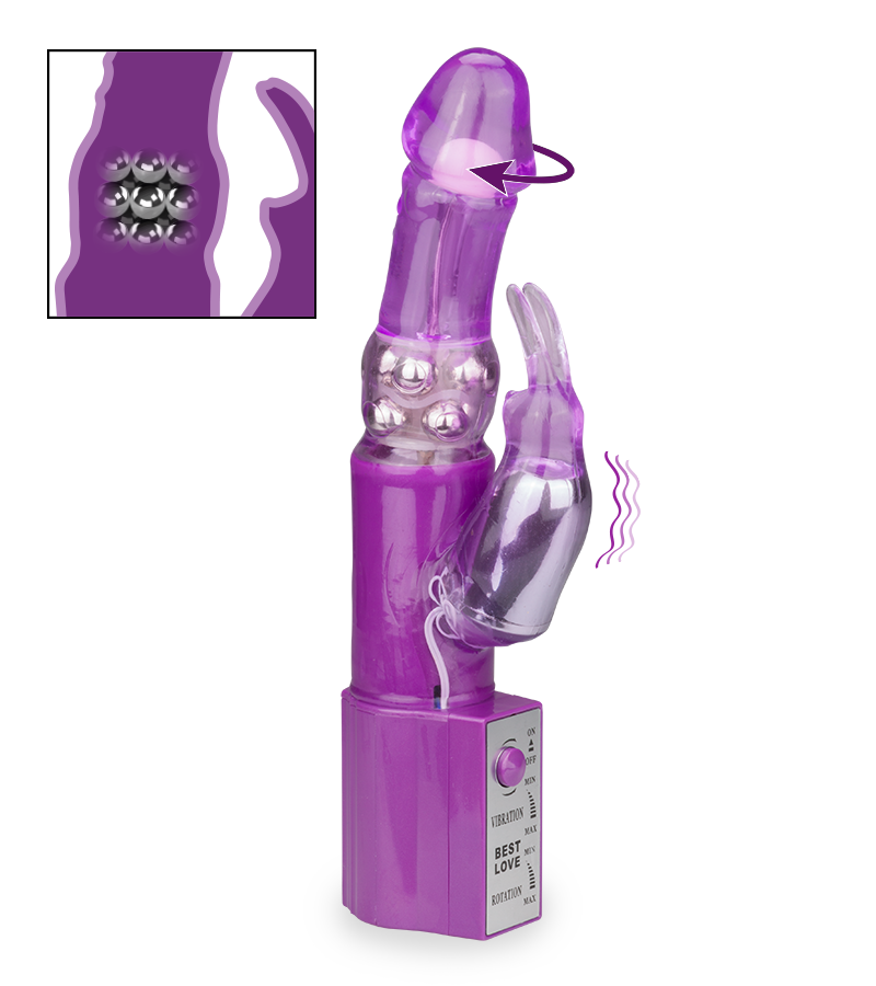 Comme tout vibromasseur rabbit, le Magic Beads offre une double stimulation : la tête rotative excitera votre vagin et le petit lapin vibrera sur votre clitoris. Cependant, il possède aussi une partie juste en dessous de la tête qui est constituée de 8 billes massantes. Celles-ci tourneront et ajouteront de délicieuses sensations. Chacune des utilisations de ce jouet, que ce soit en solitaire ou avec un partenaire, se transformera en effusions de plaisir ! Réglez rotations et vibrations indépendamment et à volonté pour ajuster chaque caresse à vos désirs. Entièrement recouvert de TPR doux, il est d’un confort absolu grâce à son aspect moelleux.