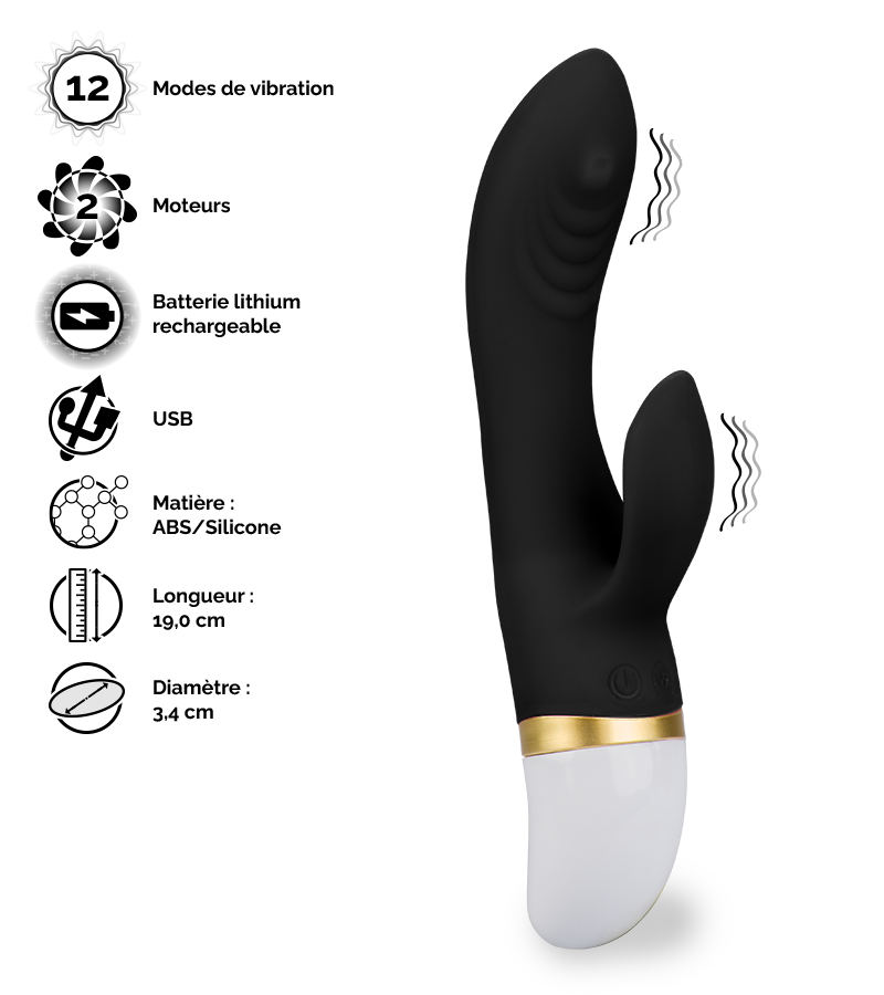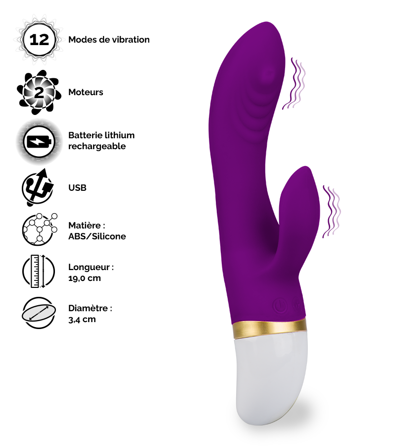 Ce vibromasseur courbé saura masser votre point G comme personne grâce à sa bille massante très précise se déplaçant de haut en bas et aux nervures présentes juste en dessous. En même temps, votre clitoris sera stimulé grâce à la petite partie externe motorisée vous proposant 12 modes de vibrations endiablées. Si vous le souhaitez, vous pourrez également vous servir de la partie insérable pour stimuler uniquement votre clitoris et ainsi profiter d’un massage digne du meilleur cunnilingus de votre vie.