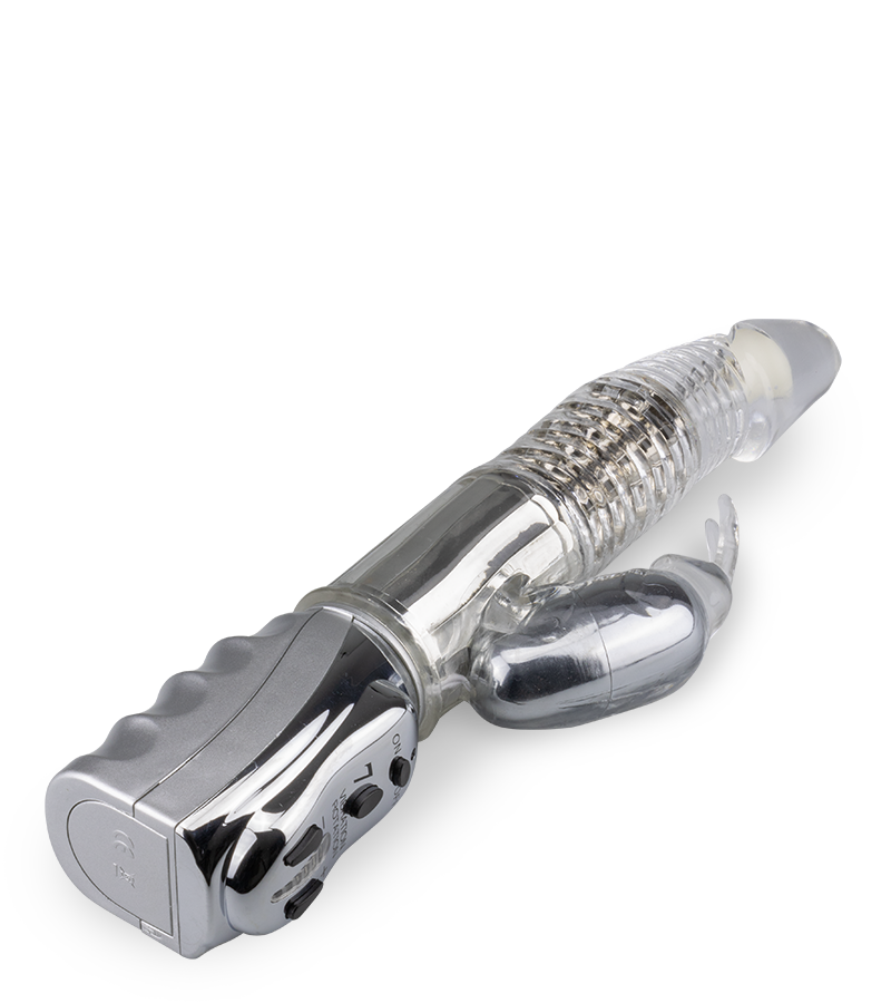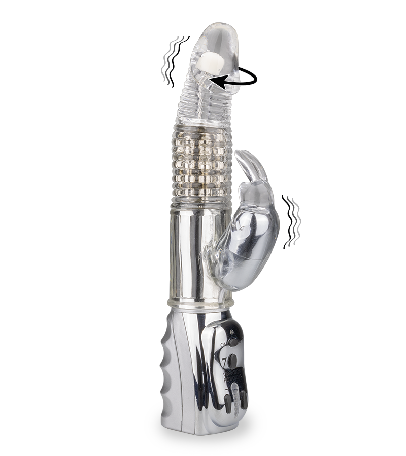 Appréciez une double stimulation orgasmique en optant pour le vibromasseur rabbit rotatif Silver Pleasure !