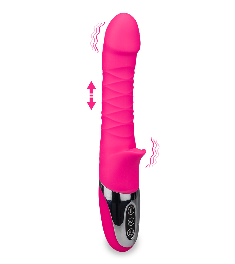 Au premier coup d’oeil, vous serez charmé par le design de ce vibro. Avec des courbes, des reliefs et une interface facile à utiliser, il a beaucoup d’atouts pour vous séduire. Pour ressentir un état extatique, 10 modes de vibration s’offrent à vous. Pour ajouter encore plus de sensations, il est également doté de 10 modes de va-et-vient. Lors de l’introduction de ce jouet coquin, vous remarquerez un petit ergot qui est là pour chatouiller votre clitoris. Pour le recharger, vous n’aurez pas besoin de piles, il vous suffira de la brancher via un câble USB magnétique. Ce vibro mesure 22,5 cm de longueur, 4,5 cm de diamètre et offre une longueur insérable de 13,0 cm. Le petit ergot fait 4,0 cm de long et 3,6 cm de diamètre.